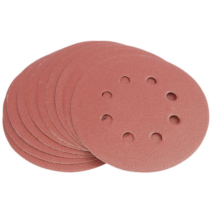 Fibre backed, hole punched hook and loop. For most 125mm random orbital sanders. Assorted pack comprises 2 x 60, 4 x 80, 2 x 100 and 2 x 180 grit grades.