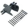36mm hex drive with adjustable jaws and two six-pin sets: 6, 8 and 10mm diameter circular profile and 6, 8 and 10mm square profile.