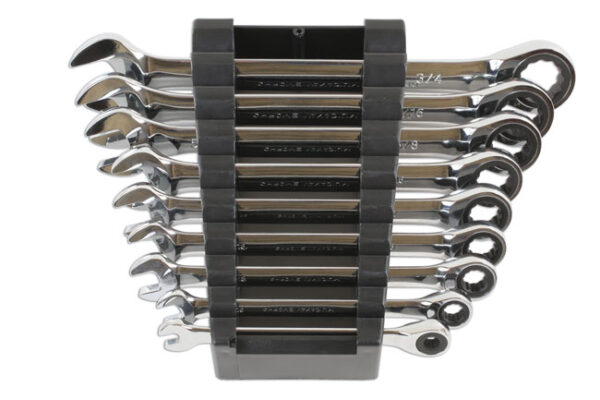 Imperial (AF) ratchet ring combination spanner set 1/4″ to 3/4″, with Bi-Hex (12pt) ratchet ring.