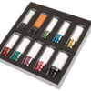 8 x Colour Coded 85mm sockets: 15mm – Dark Green, 17mm – Blue, 19mm – Yellow, 21mm – Red, 22mm – Green, 23mm – Purple, 24mm – Pink, 27mm – Black.