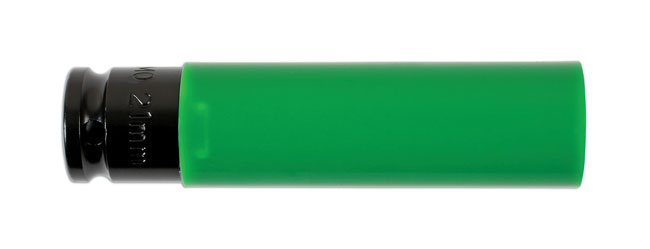 Extra long wheel nut socket manufactured from Chrome Molybdenum with protective sleeve 21mm x 130mm