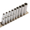 A set of deep 1/4″D BA sockets from 0BA – 8BA, manufactured from satin finish chrome vanadium.