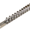 A set of standard 1/4″D BA sockets from 0BA – 10BA, manufactured from satin finish chrome vanadium.