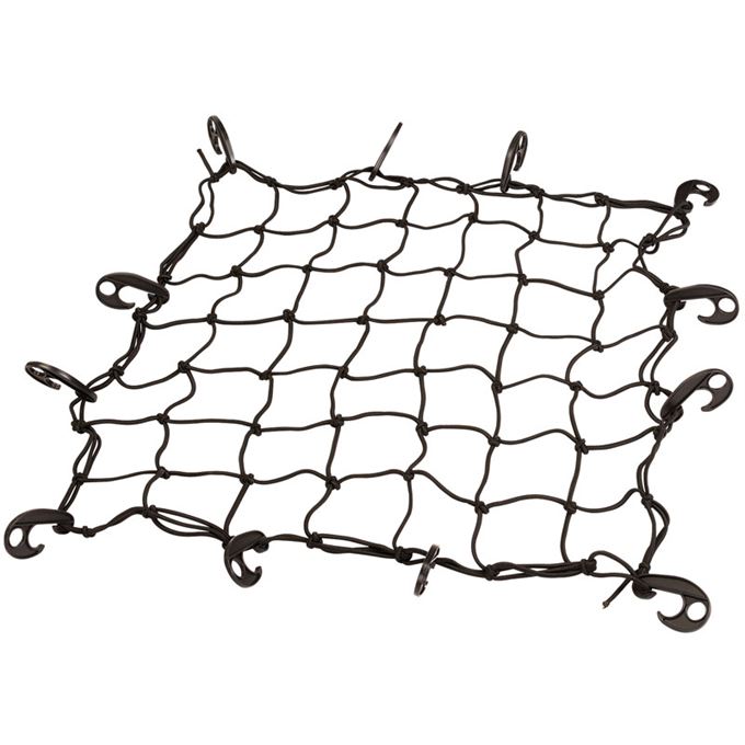 A practical bungee cargo net for keeping vehicle loads safe and secure whilst in transit. The 75cm by 75cm-elasticated rubber net comes complete with 12 plastic hooks.