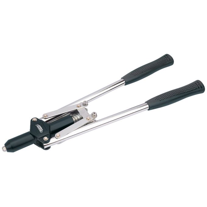 Expert Quality, compound action riveter with spring action tubular steel handles and rubber soft grips. Supplied with nozzle wrench for use with the four interchangeable nozzles, which accept 2.4, 3.2, 4.0 and 4.8mm alloy and blind rivets. Carton packed.
