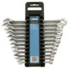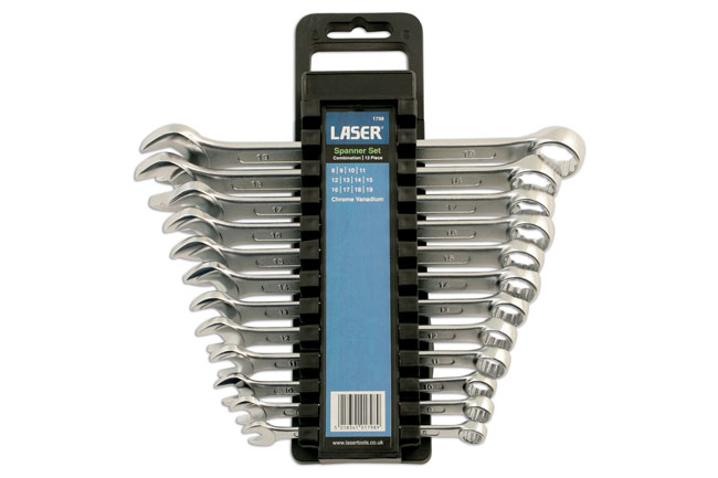 A good value set of metric combination spanners manufactured from chrome vanadium with a satin finish and polished jaws. A useful medium sized set that includes every size from 8mm to 19mm, ensuring the right spanner is available whatever the job. The Bi-Hex (12pt) profile has a 15 degree offset head for better accessibility. Supplied in a practical storage clip that can easily be screwed to a tool chest or wall rack keeping the spanners organised and close to hand.