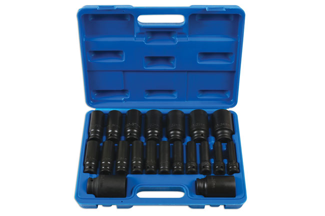 Hardened and tempered sockets designed for impact use; manufactured from chrome molybdenum with black phosphate finish.