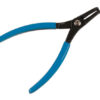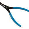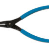 Set of bent circlip pliers for compressing and fitting external circlips, with hardened, tempered steel jaws and 1.75mm tips. Wide jaw capacity opens to 60mm, suitable for a wide range of circlip sizes. Compact size, 175mm long with blue, plastic-dipped handles for easy circlip fitting and removal.