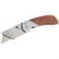 Expert Quality, with a comfortable smooth hardwood handle. Fitted with a safety locking mechanism and belt clip. Blade is easily and quickly changed by simply pressing a button.