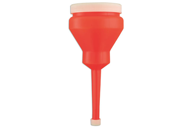 Compact funnel with non-spill rim. Ideal for motorcycles and small engines.
