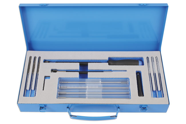 This glow plug brush cleaning kit has been designed to offer an effective and efficient glow plug aperture cleaning solution. When glow plugs require replacing, it is best practice to properly clean out the glow plug aperture within the cylinder head, particularly around the area of the glow plug heater element, threads and sealing area to ensure the glow plugs seal correctly and can be properly torqued down. Failure to do so has been proven to dramatically reduce the service life of the new glow plugs.