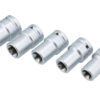 Set of 3/4″D x Star* impact sockets, each with a drilled collar to accept retaining pin or detent ball.