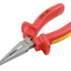 VDE insulated long nose pliers, part of a wide range of insulated tools from Laser, manufactured from chrome vanadium with satin finish, with high voltage safety grip handles. VDE and IEC60900 certified, recomended for use when working on high voltage hybrid and electric vehicles.