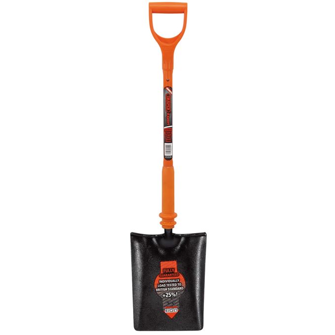 Expert Quality, fully insulated taper mouth shovel designed for working on or near live cable and wires. Individually tested to 10,000 volts, guaranteeing safe working on 1,000V and complying to the BS 8020: 2011 standards. Manufactured with an epoxy fibreglass core and attached to a fully enclosed insulated shaft with hand slip guard. Each shovel is supplied with a certificate of conformity, which correlates with a unique traceability number embossed on the shaft. Sold loose.