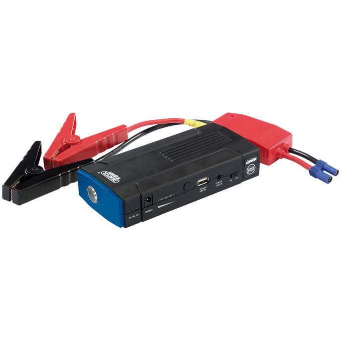 Expert Quality, compact and powerful jump-starter/charger. Delivers a potent charge for emergency jump-starting vehicles up to 6L petrol and 2L diesel. Able to switch between 12V, 16V and 19V and fitted with a USB port and a work lamp with three settings; constant, SOS and flashing. Supplied with a padded carry case, smart jump leads, 4 in 1 multi purpose USB lead for charging mobile phones and tablets, set of 8 laptop adaptors with cable, also a 230V and 12V charging adaptor.