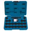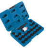 A 22 piece locking wheel nut set for Audi vehicles, which allows removal of locking wheel nuts where the original key is missing or lost. This kit is equivalent to VAG OEM tool T40073 and is suitable for tyre fitting bays and garages.