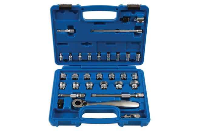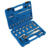 1/4″D socket adaptor with quick release mechanism; 2 x ball end extension bars: 50 & 150mm.