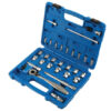 1 x 3/8″D universal joint, 2 x 3/8″D extension bars 75 & 150mm, 3/8″D socket adaptor with quick release mechanism & 1 x 3/8″D to 1/4″D adaptor.