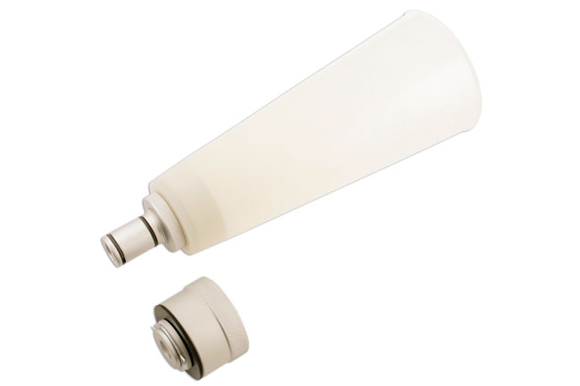 Funnel designed to seal onto the oil tank, preventing oil spillage on cylinder head/exhaust manifold etc.