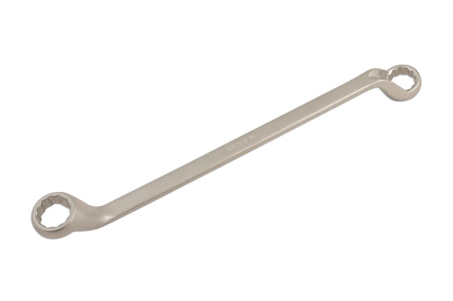 Offset ring spanner providing greater access to strut nuts on a wide range of vehicles.
