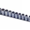 Special profile 1/2″D set of sockets, with unique ‘face drive’ from 10mm to 19mm, manufactured from satin finish chrome vanadium.