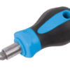 Stubby Star* profile screwdriver, with 7 interchangeable tamperproof star bits, T10H to T40H, ideal for use in tight areas. Compact design, only 85mm long for easy storage, with a comfortable soft grip handle. The bits are supplied on a push-fit storage wheel to keep them safe and organised. A useful set to keep to hand to adjust tamperproof fixings.