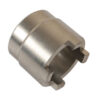 Four toothed castle nut socket for Kawasaki swinging arms, which allows for loosening and tightening of the swing arm nut.