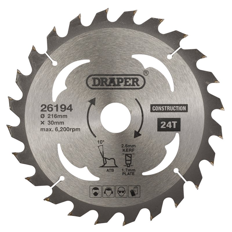 This Tungsten Carbide-Tipped (TCT) construction circular saw blade is hardened and tempered to ensure a long life. High-quality precision-ground carbide teeth make the blade robust and it has a general purpose thin kerf for rapid cutting. Designed for use on hardwood, softwood, MDF, chipboard, composites and wood with nails. Compatible with most 216mm circular saws with a 30mm and 25.4mm bore. EN847-1 Standard.