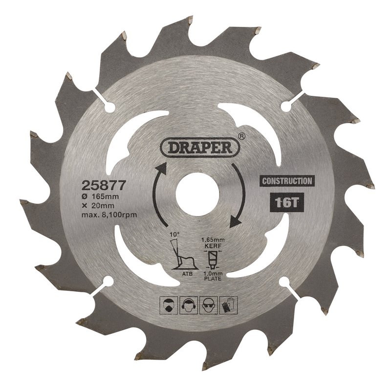 TCT Cordless Construction Circular Saw Blade for Wood & Composites, 165 x 20mm, 16T