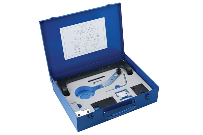 This comprehensive kit has been manufactured for the B38 and B48 engined MINI and B38, B48 and B58 BMW engines; this kit consists of the camshaft and crankshaft holding tools as well as the flywheel alignment tool for manual and automatic vehicles. Please note Laser Timing Chain Pre-Tensioner Tool (Part No. 5153) may also be required. An additional kit may be required if work is being carried out on the balance shafts – use Laser Part No. 7253 (B38 engines) or Part No. 6840 (B48 engines).