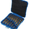 A 99 piece general use drill bit set, Titanium Nitride (TiN) coated for durability, includes drill bit sizes 1.0-10mm diameter for use in standard three jaw chucks.