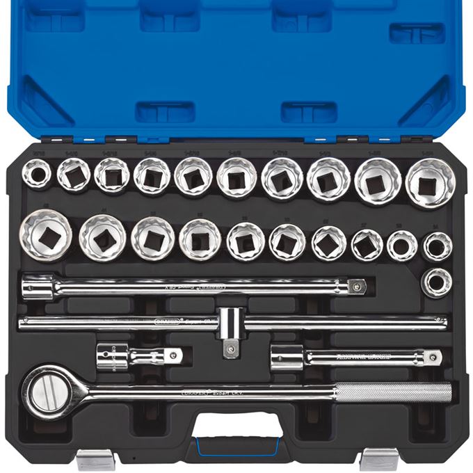 Calitate Expert. Tubulare in 12 laturi fabricate din oțel crom vanadiu călit și temperat cu finisaj lustruit. Livrat cu un clichet reversibil și accesorii. Ambalate într-o cutie de depozitare din plastic rezistent cu mâner cu prindere moale.