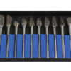 Ball shaped head x 6mm cut length; flame shaped head x 13mm cut length; tapered shaped radius end x 13mm cut length.