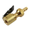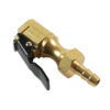 Tyre valve connector with clip-on chuck and open end for fitment onto a 1/4″ hose. Suitable for inflating tyres on cars, vans, motorcycles, and bicycles.