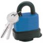 Laminated steel body with hardened, plated coating steel shackle. Precision pin tumbler and brass cylinder. Special bumper to prevent damage to locked item. Supplied with two keys. Key blanks are available separately. Display packed.